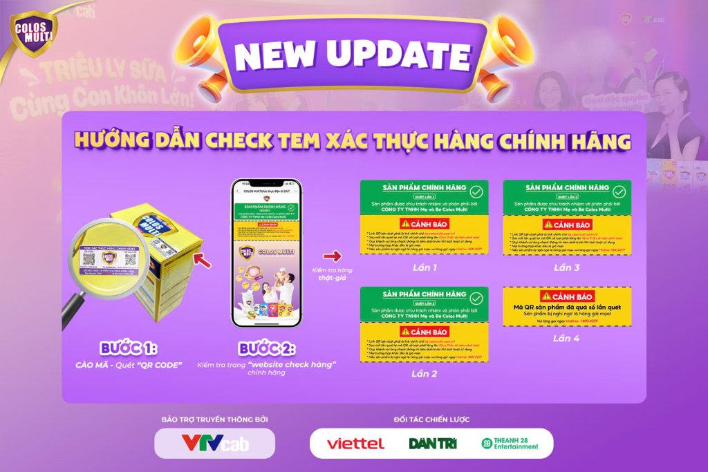Công ty TNHH MẸ VÀ BÉ COLOS MUTI xin thông báo về mẫu tem xác thực mới cho các sản phẩm và cách nhận biết như sau :
